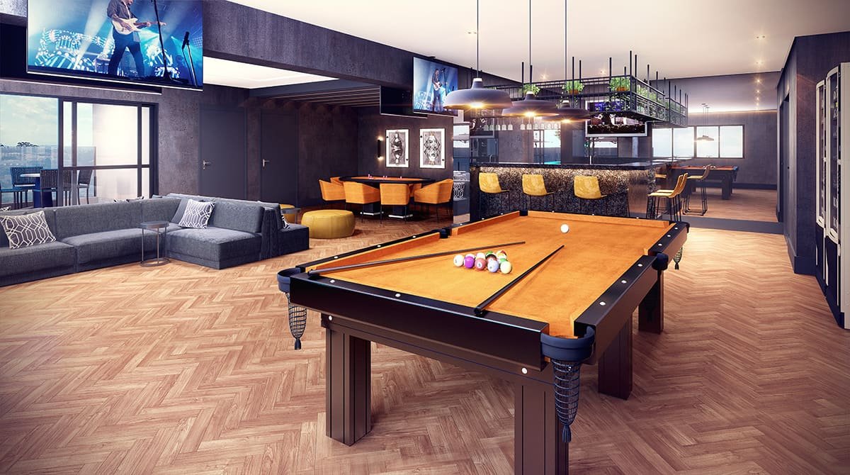 ✔️ Lazer completo – Sports Bar, piscina privativa, academia, sauna, bicicletário e muito mais!